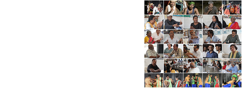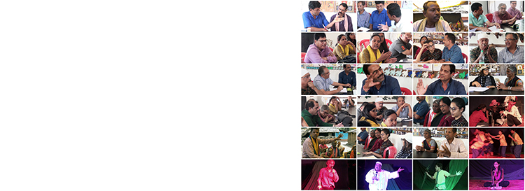 Dr. Jaimati Kashyap [Phd scholar] Kondagaon, Devendra Kashyap [Actor, writer and computer operator in PWD] Kondagaon, Bhawani Prasad [Engineer and activist] Koraput, Bibek Ranjan [Lawyer and activist] Koraput, Rajesh Tripathi [Activist, Jan Chetna] Raigarh, Khem Vaishnav [Artist] Kondagaon, Pravin Nadkar [Cultural activist and documentary film maker] Mumbai, Khirendra Yadav [Video volunteer in ‘India Unheard’, folk singer and farmer] Kondagaon, Subhash Chandra Pradhan [Director and writer], Gorishankar [Stage actor] and Kanha Bagar [Stage actor] from Mirror Theatre, Jharsuguda, Prashant Mishra [Lawyer], Shalini Sawhney [Director, The Guild], Rajkumar Korram [Artist and farmer], Shantibai [Artist] and Namita Vishwakarma [Student] from Kondagaon, Navjot Altaf [Artist] Mumbai.